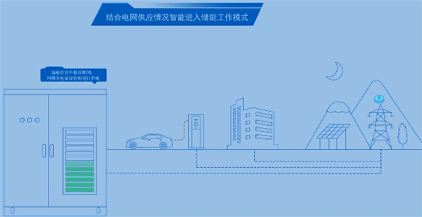 xStorage 户外储能系统可根据电网情况智能进入储能工作模式。当夜晚电价处于低谷期间,可利用市电直接为建筑、充电桩和储能柜充电供能;当白天电价处于高峰期间,则利用储能柜为建筑和充电桩供电,使园区利用峰谷电价差获取更多收益。
