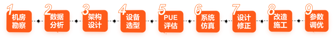 “9步走”框架包括机房勘察、数据分析、架构设计、设备选型、PUE评估、系统仿真、设计修正、改造施工、参数调优,基于完整、逻辑严密的程序和流程,可以更好地对抗数据中心节能改造的不确定性。这个过程看似复杂,但是维谛技术(Vertiv)一直秉持“把复杂交给维谛,把简单留给客户”的宗旨,全流程陪伴客户的数据中心节能改造。