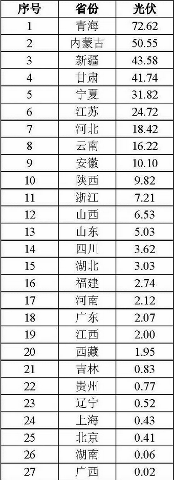 表3:2016年1~11月各省太阳能发电量(单位:亿kWh)