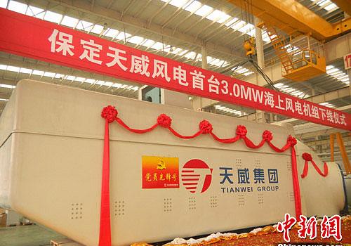 河北省首台3.0兆瓦高速永磁型海上风电机组在保定正式下线。