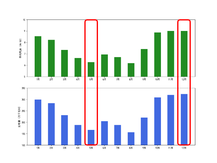 图4 将图2与图3中的风速数据及发电量数据整合并再次对比