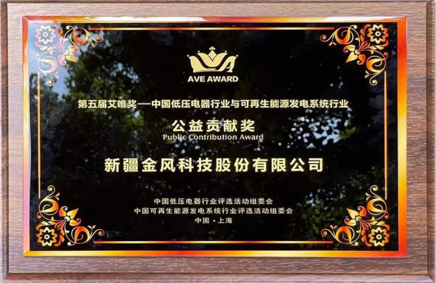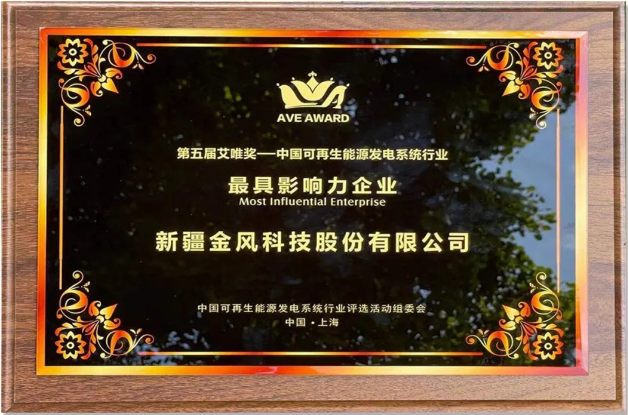 ↑ 金风科技荣获第五届“艾唯奖”可再生能源发电系统“行业最具影响力企业”及“公益贡献奖”