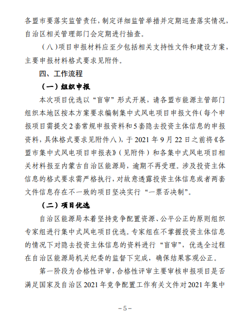 附件:1.内蒙古自治区2021年风电项目竞争配置工作方案
