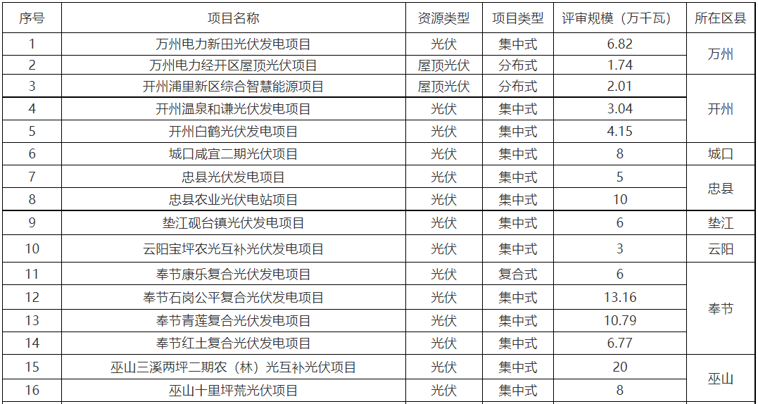 重庆市能源局关于重庆市2021年风电、光伏发电开发建设竞争性配置结果的公示