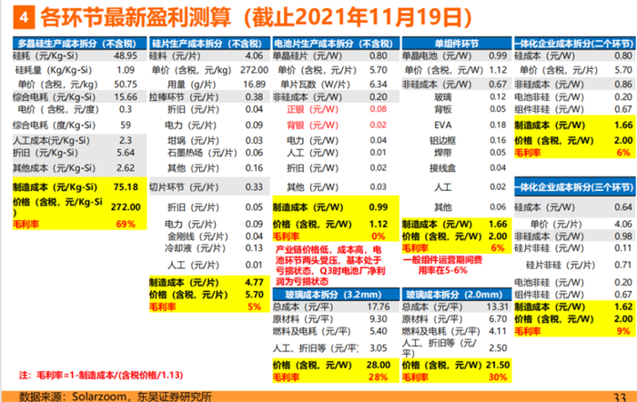 在产业链其他环节,电池片厂商陷入持续亏损,组件产商也几乎赚不到钱,但最上游硅料企业的毛利率却高达69%。这就意味着整个光伏产业链的利润几乎都被硅料企业赚取了。