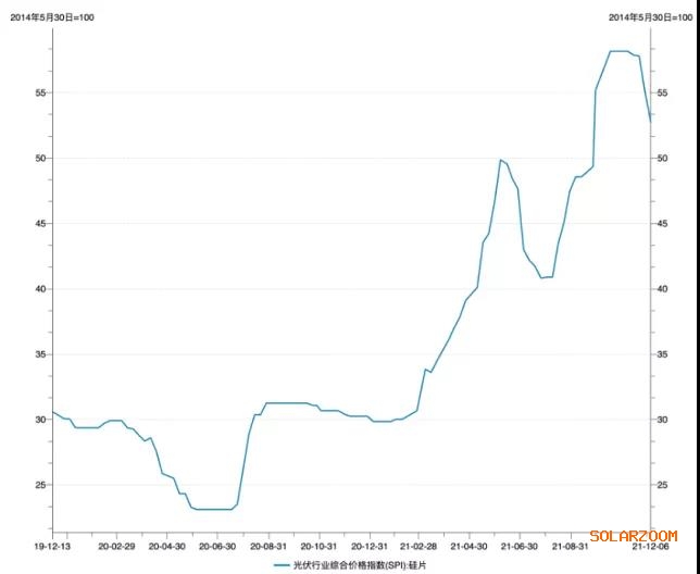 硅片价格指数。来源:Wind