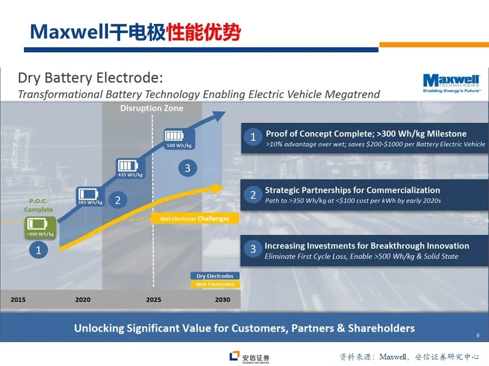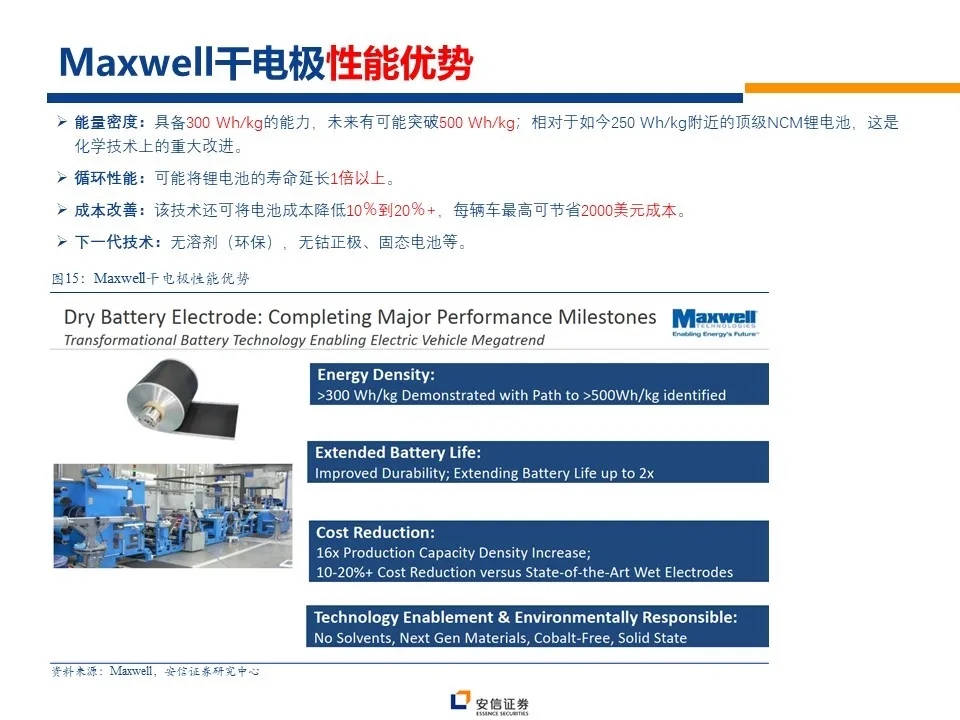 特斯拉2.18亿元溢价收购超级电容企业Maxwell,路透社报道其干电极技术预计将在2020年底应用于特斯拉储能或电动汽车中。