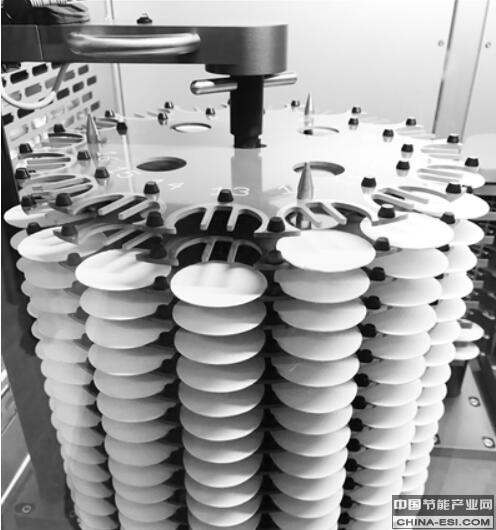 ▲称重中心的滤膜称重系统一次可以对320片滤膜进行编码/读码和称重。本报记者闫海超摄