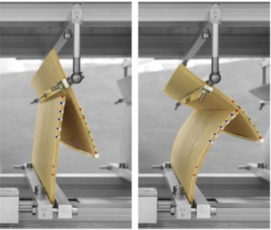 为了最大限度地提高反应速度,研究人员将这些木板成对排列起来,一层以基本垂直的状态放置,另一层则悬浮在半空。当天气变得潮湿时如夜间或早晨,板子就会相对立直,而当空气边干比如到了正午,木板就会发生弯曲,处于低处的那块木板将上面的木板往外推,从而在下面形成阴影。