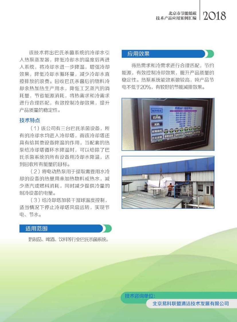 基于压缩式热泵的巴氏杀菌系统余热回收技术——应用案例:北京艾莱发喜食品有限公司巴氏杀菌系统余热回收项目